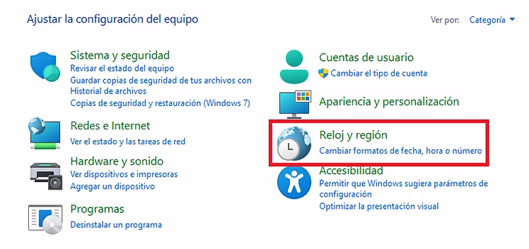 - Haz clic en Hora e idioma y, a continuación, en Región e idioma.